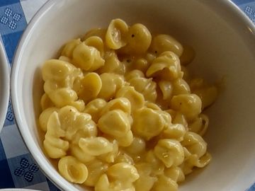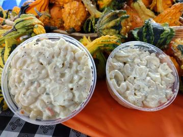 Traditional macaroni and cheese prepared in a casserole with cheddar sauce and baked in the oven. See price
