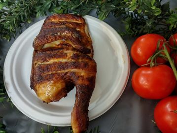 Big piece of tender chicken with our BBQ sauce. Ask us for yours.